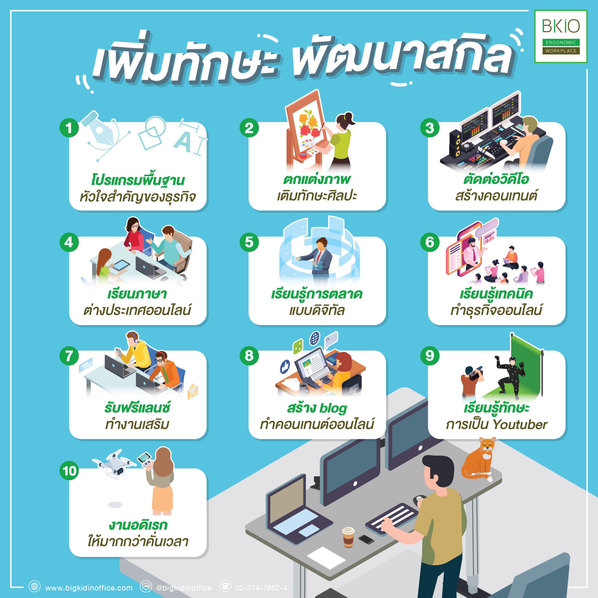 การฝึกฝนทักษะด้านต่างๆ เช่น การสื่อสาร ความคิดสร้างสรรค์ การวิเคราะห์ การติดตามข่าวสารเทคโนโลยีใหม่ๆ พร้อมเรียนรู้รับสิ่งใหม่ๆ จากเทรนด์ดิจิทัล จึงเป็นประโยชน์ที่สามารถนำไปปรับใช้ในงานได้ทั้งในปัจจุบันและอนาคต